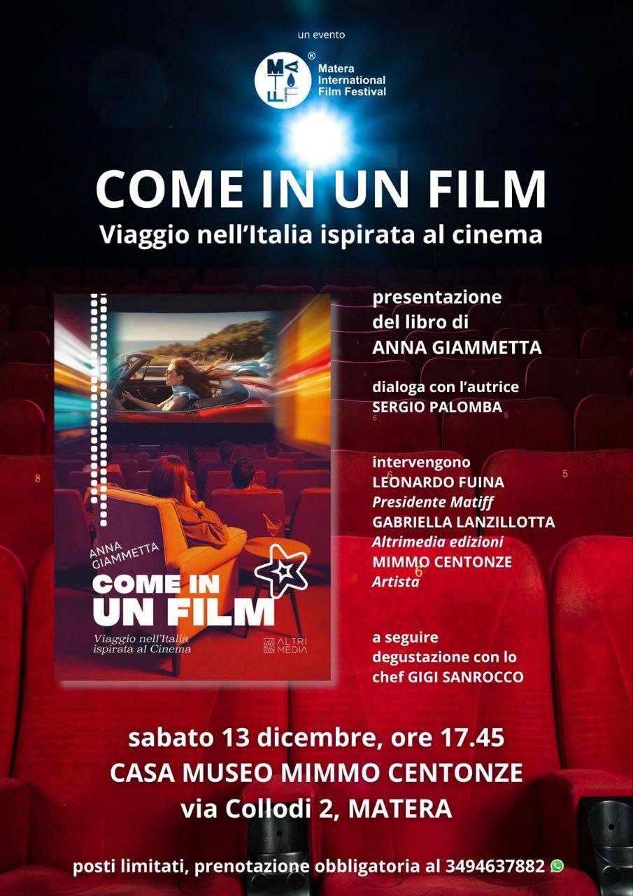Nasce “cucinema”, il neologismo coniato dal giornalista Sergio Palomba, nel salotto della Casa Museo di Mimmo Centonze in occasione della nuova presentazione del libro scritto da Anna Giammetta “Come in un film”, per parlare del legame tra cinema e cucina. Complice un’atmosfera accogliente ed elegante, dove l’arte, splendida, era in mostra quale porta di accesso alla sensibilità dell’artista, questo quarto appuntamento ha dato spazio a un nuovo racconto, uno dei tanti in verità, protagonista della pubblicazione firmata Anna Giammetta. Anche grazie all’organizzazione, curata da Leonardo Fuina, presidente del Matera Film Festival, e alla presenza dello chef Gigi Sanrocco, è stato naturale parlare di contaminazioni tra pellicole, audiovisivo e piatti da gustare. Un connubio speciale sottolineato anche dal sindaco della città, Antonio Nicoletti, che ha ricordato il recente titolo conquistato lo scorso 10 dicembre dalla cucina italiana diventato Patrimonio immateriale Unesco e di come Matera avesse sostenuto al candidatura partecipando al “Pranzo della Domenica” promosso, lo scorso settembre, dal Ministero dell’Agricoltura. Sono molteplici i richiami al “cucinema”: dal Vesper Martini di 007, alla ratatouille di “Ratatouille” e agli spaghetti all’assassina di “Lolita Lobosco” passando per una abitudine alla Sambuca con “la mosca” (il chicco di caffè) di Federico Fellini. Insomma, una degustazione che ha nutrito di aspettative poi soddisfatte dal buffet preparato dallo chef Sanrocco, in un clima di perfetta sintesi tra editoria ed enogastronomia.